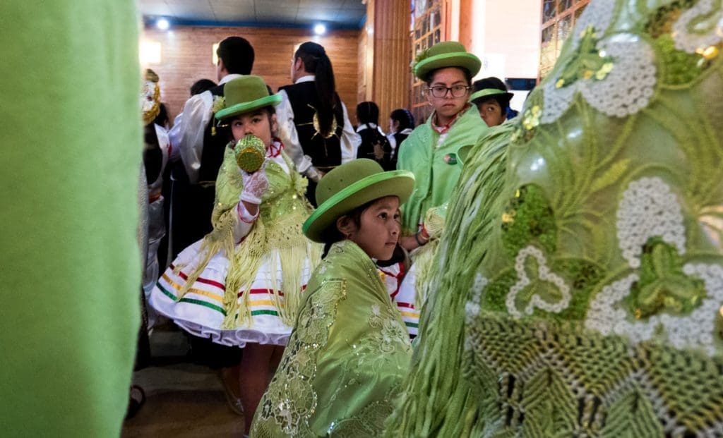 Durante tutta la settimana che precede il grande giorno, nel santuario dedicato alla Virgen si succedono dalle quattro alle cinque messe in un giorno, ed è qui che i fedeli vengono a salutare ‘Carmelita’ prima di ogni desfile. All’inizio ho trovato molto strano vederli in chiesa con gli stessi costumi delle danze ed ho provato a chiederne il motivo ad alcuni di loro, la risposta è stata semplice: si balla per ringraziare la Virgen ed il vestito è il primo dono, quanto più è ricco, colorato, e brillante, tanto prezioso sarà considerato il regalo.